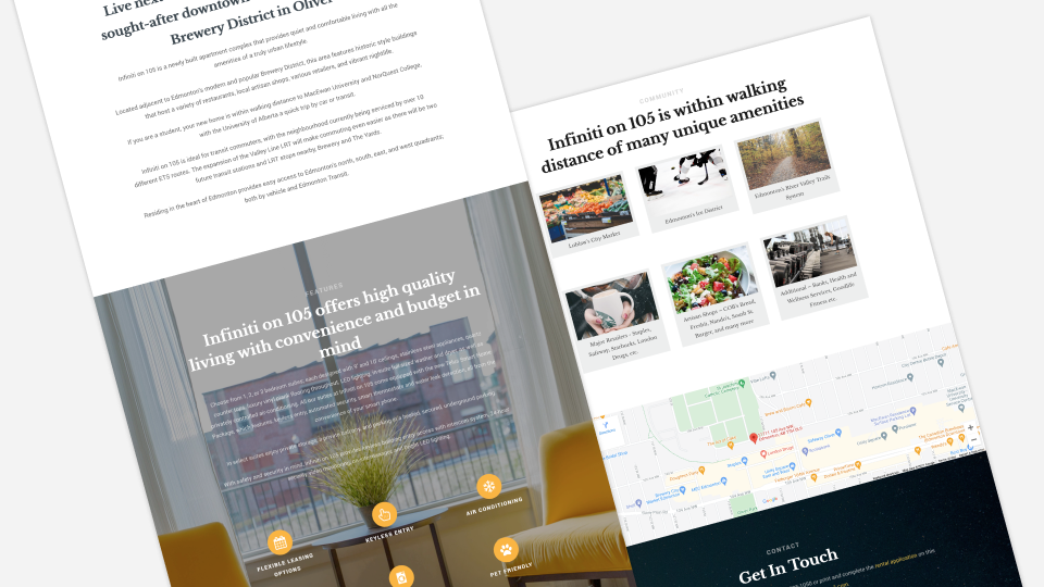 Infiniti 105 is a luxury rental apartment development and a notable addition to one of Edmonton’s most dynamic neighbourhoods, the Brewery District in the community of Oliver.