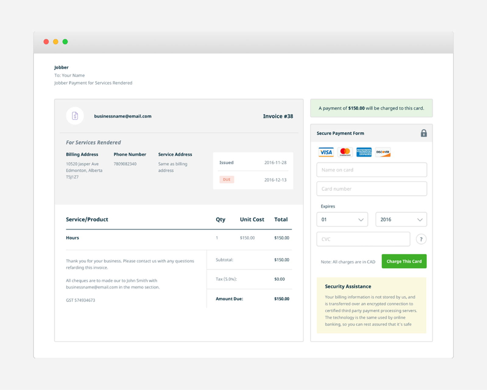 Jobber Payments is a fully integrated payment processing platform that allows service providers to securely save and charge credit cards in Jobber.